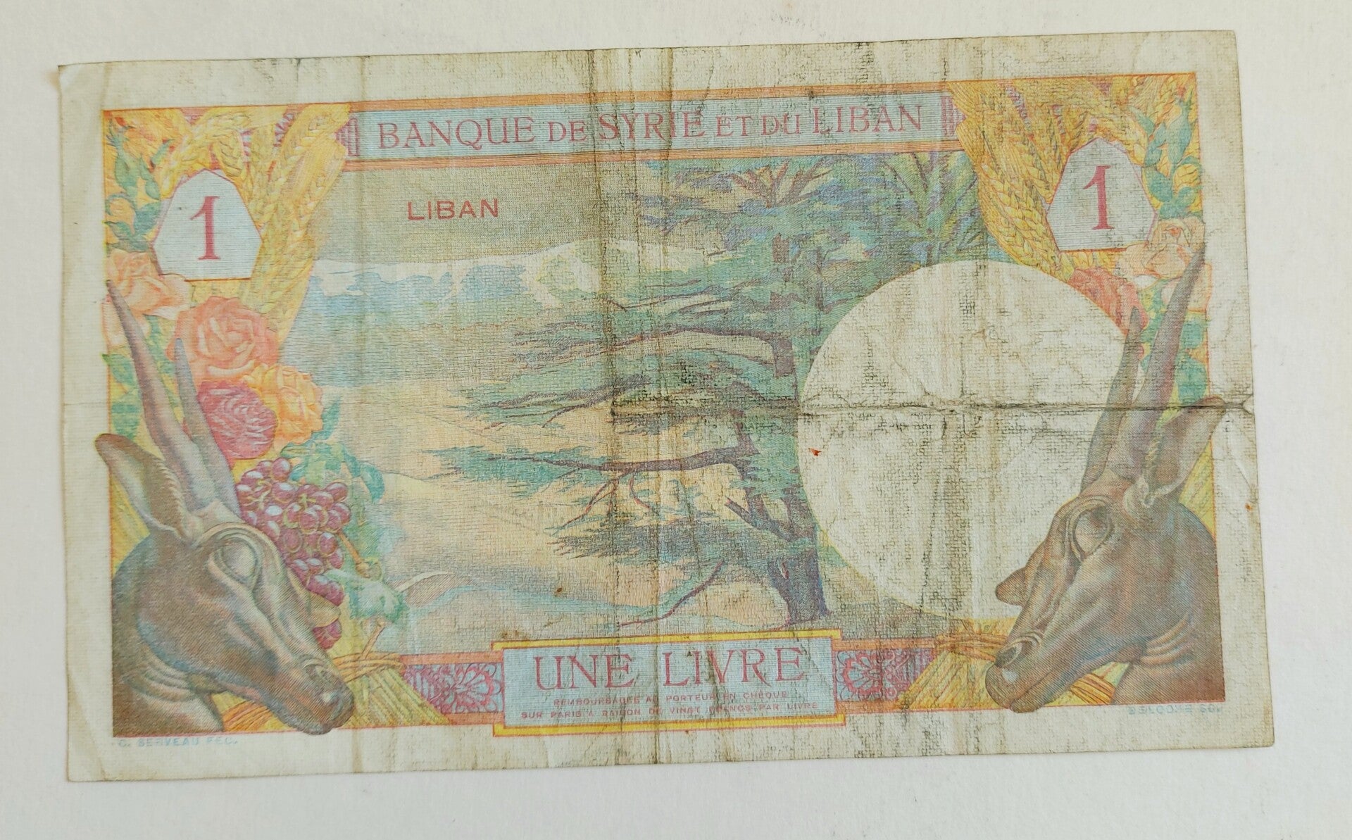 1939 Lebanon 1 Livre Banknote Not Tears Or Rips.